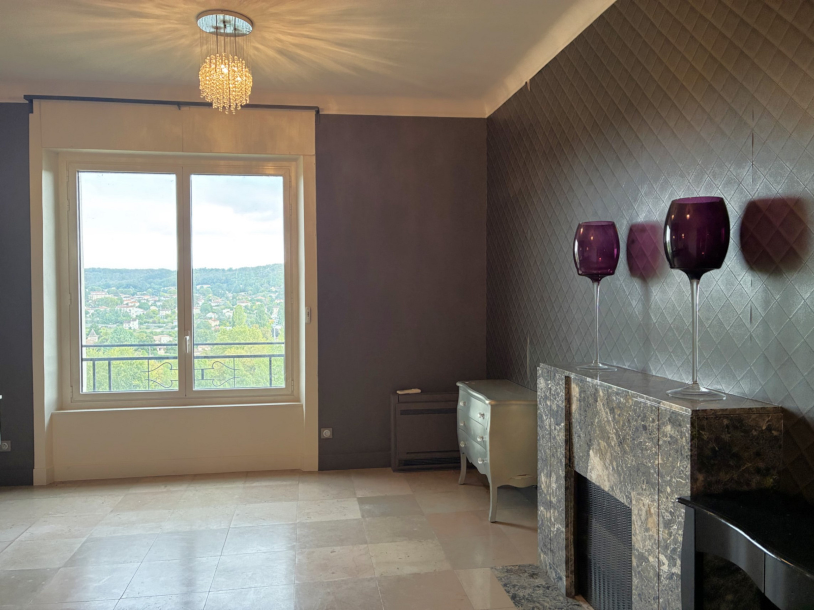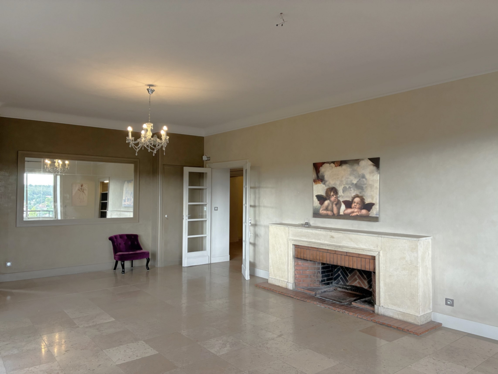 - 1 salle de réception (74m²) avec cheminée en marbre,