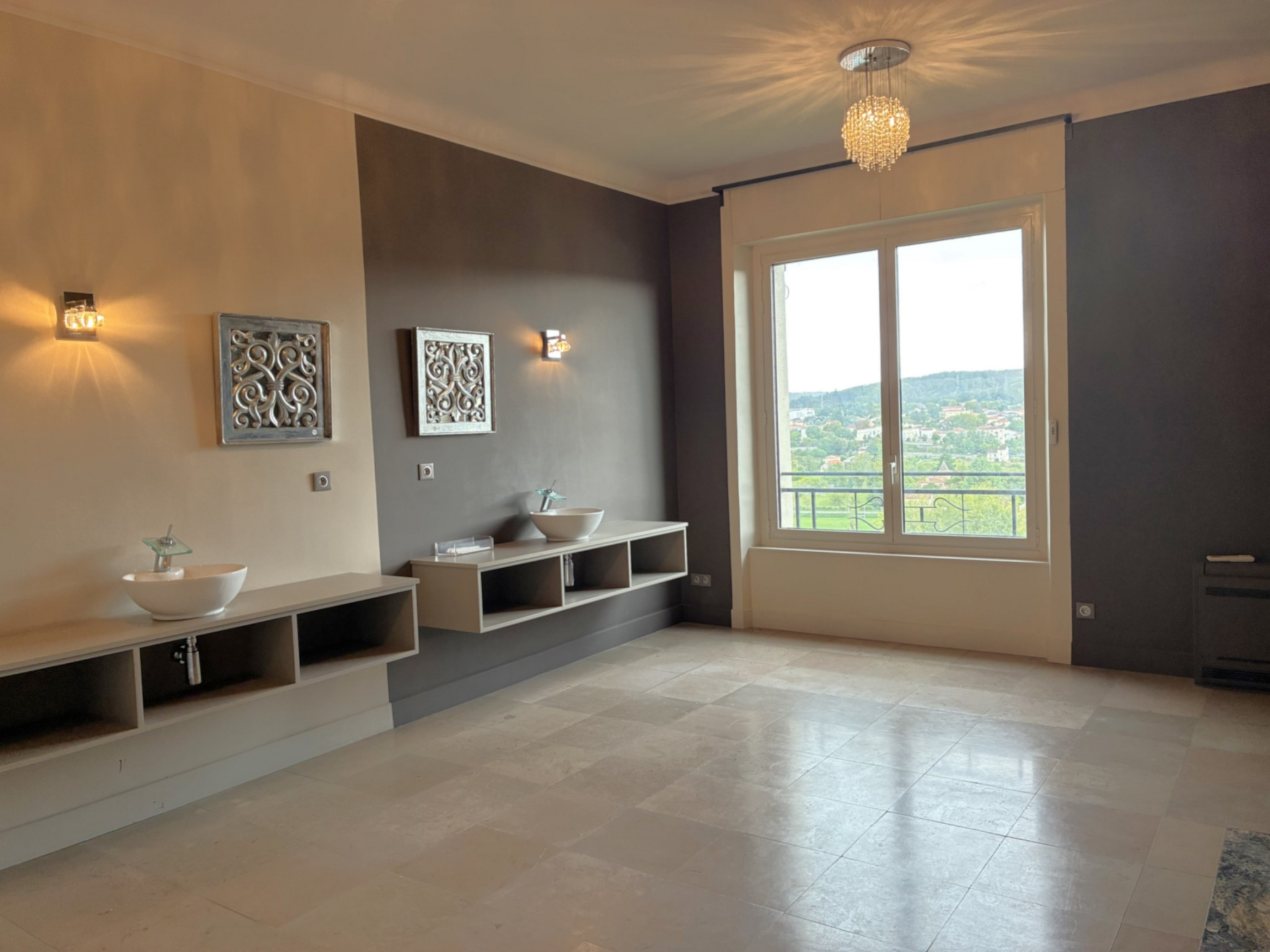 Sols en marbre et béton ciré, planchers en chêne massifs dans les chambres (pièces),