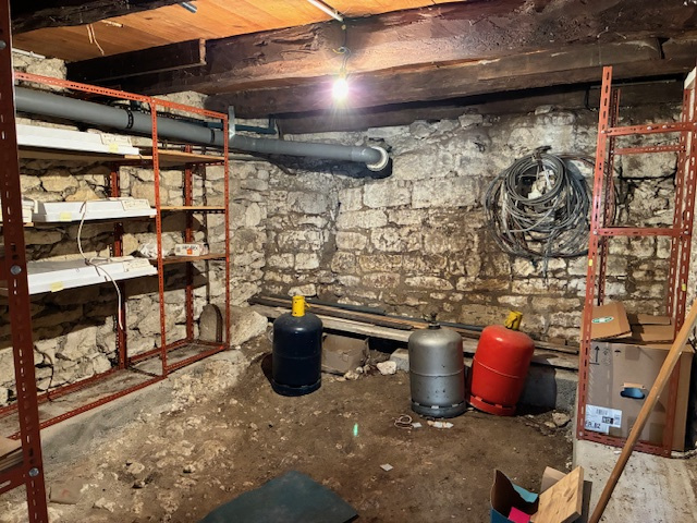 En rez de jardin, par un escalier, une cave (26 m²), qui comprend une salle d’eau et des wc séparé.